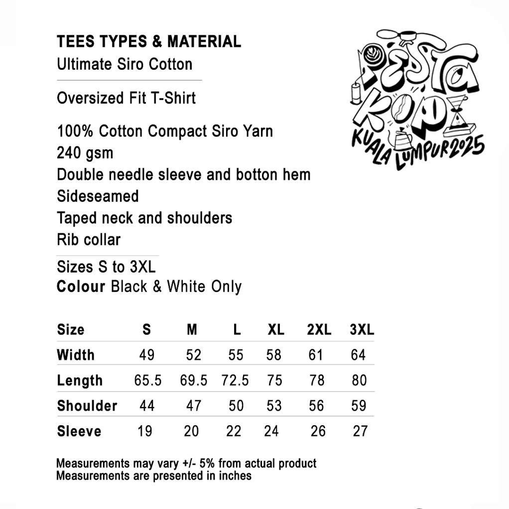 This exclusive tee is crafted specially for Pesta Kopi KL 2025. Made with high-quality cotton and premium finishing, it's built for comfort, style, and lasting wear.